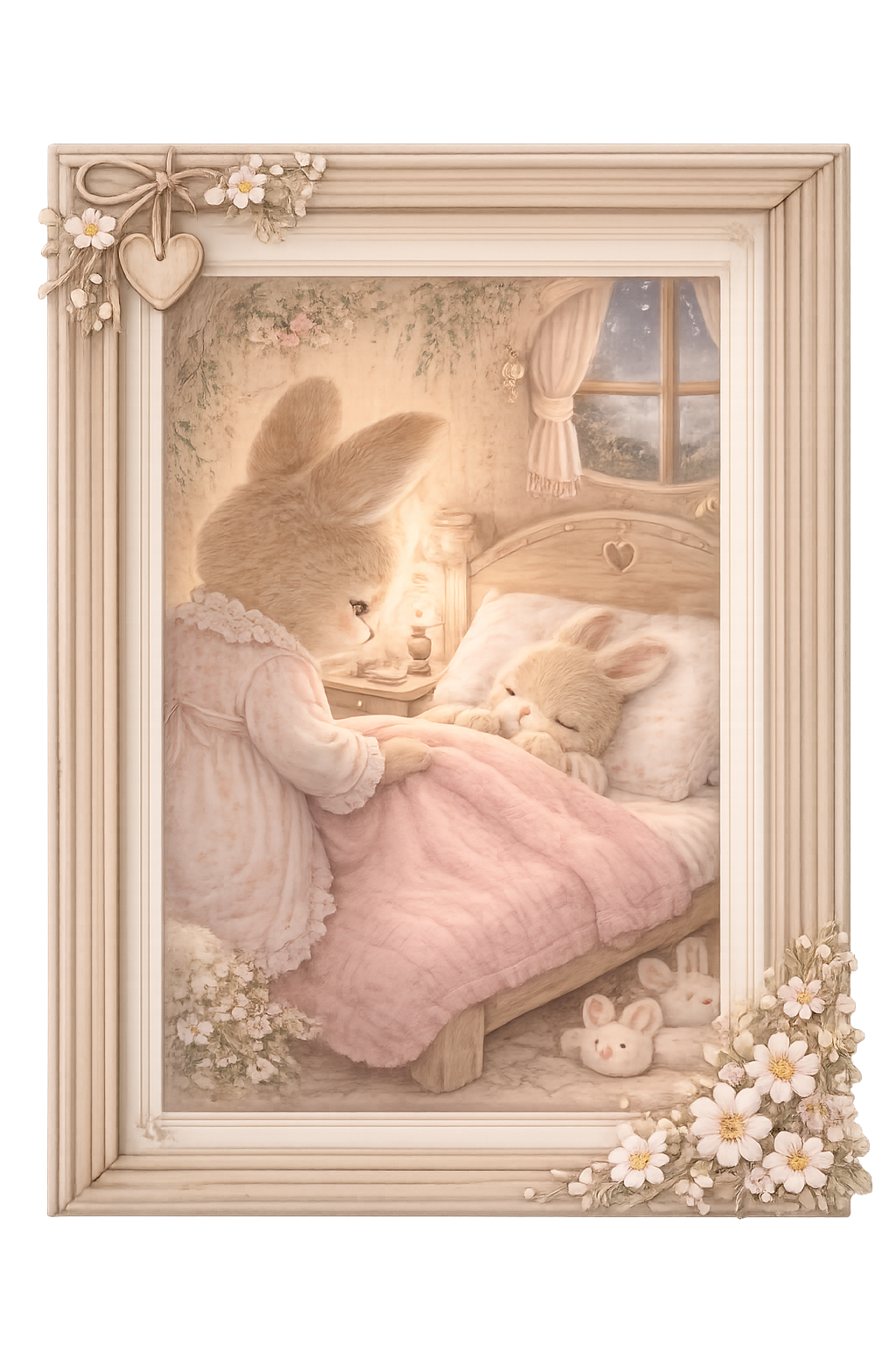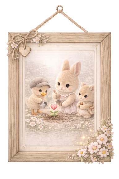 Aan het kronkelige bloemenpad, vol met zachte bloesems, staat het schattige huisje van Luna. Het heeft een rond houten deurtje met een hartje erin, en s' avonds schijnt er een warm lampje dat de sfeer zo gezellig maakt. Binnen is het altijd knus en leuk. Je vindt er een kleine houten tafel waar Luna gezellig met haar mama thee drinkt. Op het fornuis pruttelt meestal wat warme chocolademelk, en de geur van koekjes en wortelcake ruik je door het hele huis. Bij het raam staat een zacht stoeltje met een plaid, en daar zit Luna vaak met haar papa, kijkend naar buiten. In de lente zien ze de bloemetjes vrolijk dansen in de wind, en in de winter genieten ze samen van de vallende sneeuwvlokjes.